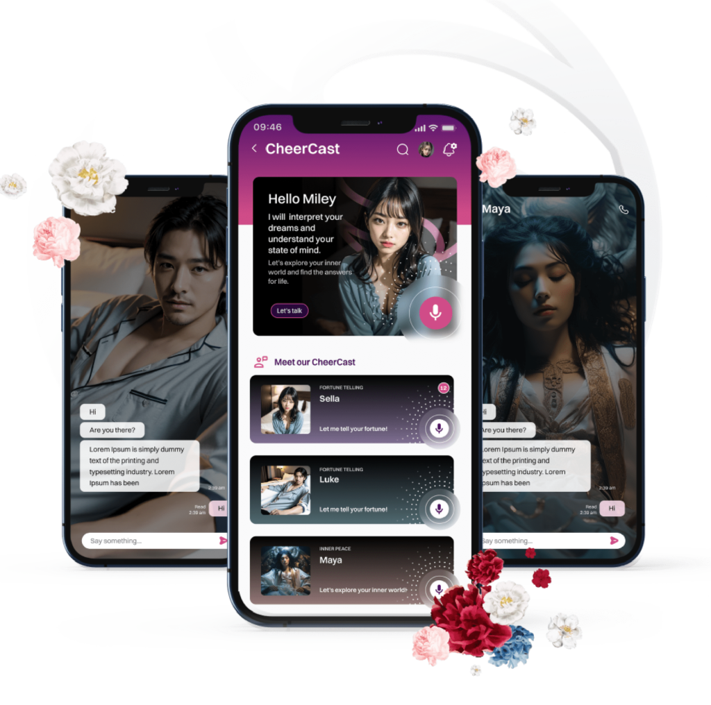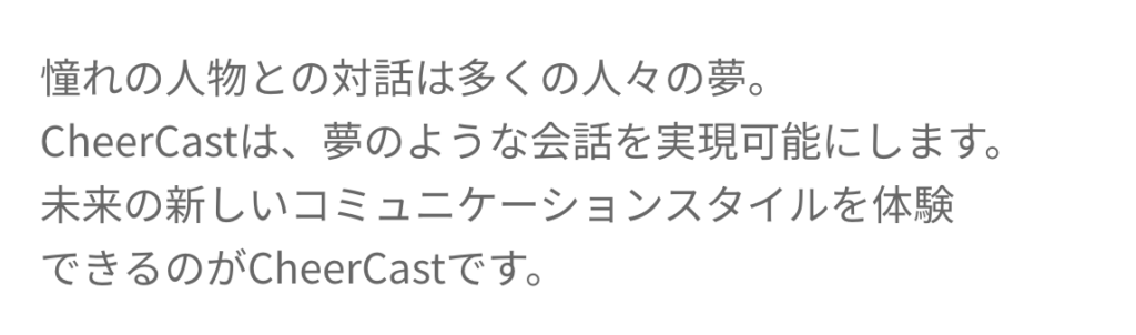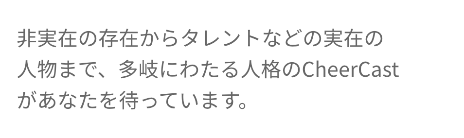 憧れのアイドルなど実在する人物がCheerCastとしてあなたを待っています。24時間いつでも、最高の瞬間を。